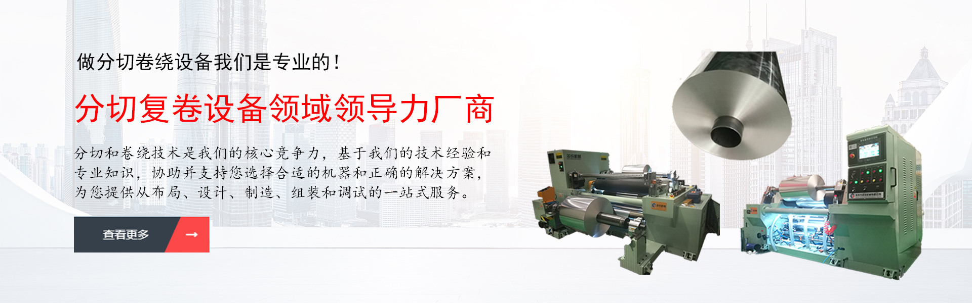 是一家集研發(fā)、生產(chǎn)、銷(xiāo)售、服務(wù)和技術(shù)咨詢(xún)?yōu)橐惑w的分切、復(fù)卷、卷繞設(shè)備生產(chǎn)的專(zhuān)業(yè)型企業(yè)